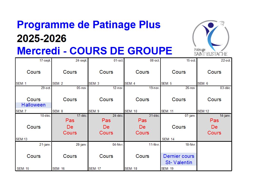 CALENDRIERS PATINAGE PLUS AUTOMNE-HIVER 2025-2026