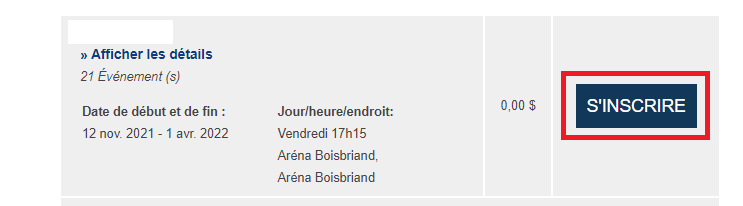 À partir de ce moment, votre place est réservée tant que vous êtes actif sur le site. Après 15min d'inactivité, vos places seront alors disponibles pour les autres membres. Vous avez la possibilité d'inscrire le patineur à une autre plage ou un deuxième patineur. Lorsque vous aurez terminé la sélection de vos plages pour tous les patineurs, déplacez-vous dans votre panier pour confirmer vos choix. |
